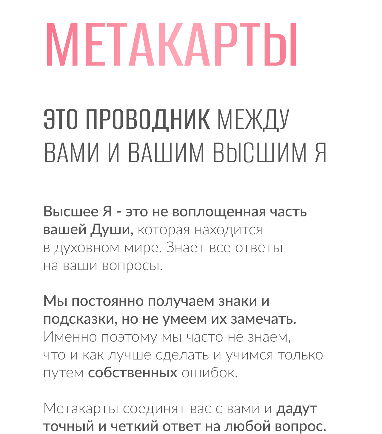 Метакарты не работают с психологией, они работают на нашем тонком уровне. Это будет ваш абгрейд и рост + не требует никаких курсов и доп обучений. Таро и МАК уже знают все, а здесь вы будете в числе первых.
